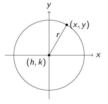 A circle is defined as the set of all points in a plane that are at a fixed distance from a central point. This fixed distance is called the radius (\(r\)), and the central point is the center (\((h, k)\)).