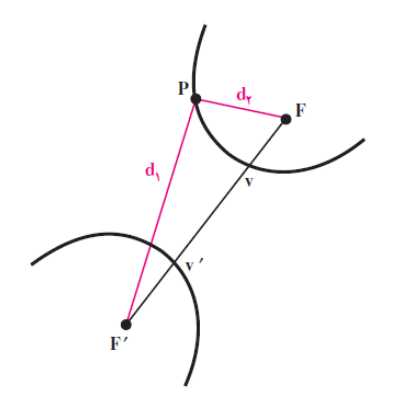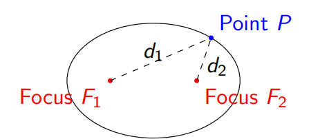 An ellipse is the set of all points in a plane where the sum of the distances from two fixed points, called the foci (singular: focus), is constant.