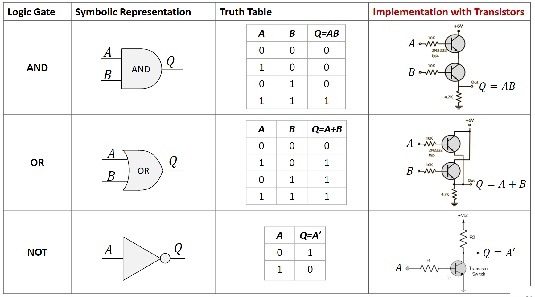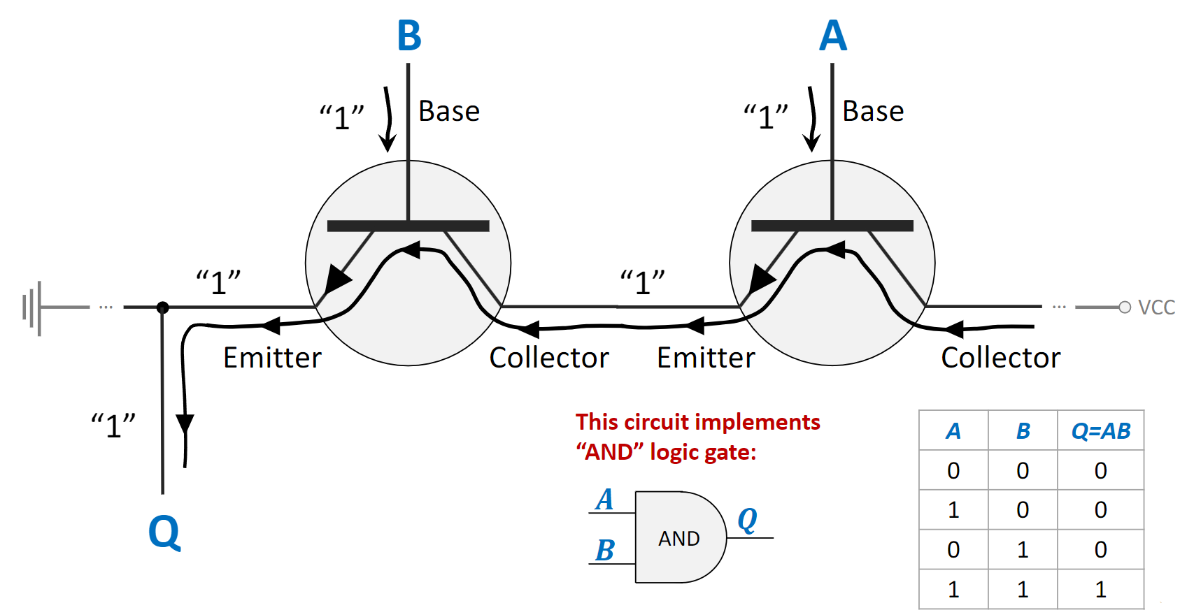 When a voltage is applied to the Base, it allows a much larger current to flow from the Collector to the Emitter. If no voltage is applied to the Base (a binary ‘0’), no current flows. This switching behavior is the basis for implementing logic gates like AND, OR, and NOT.