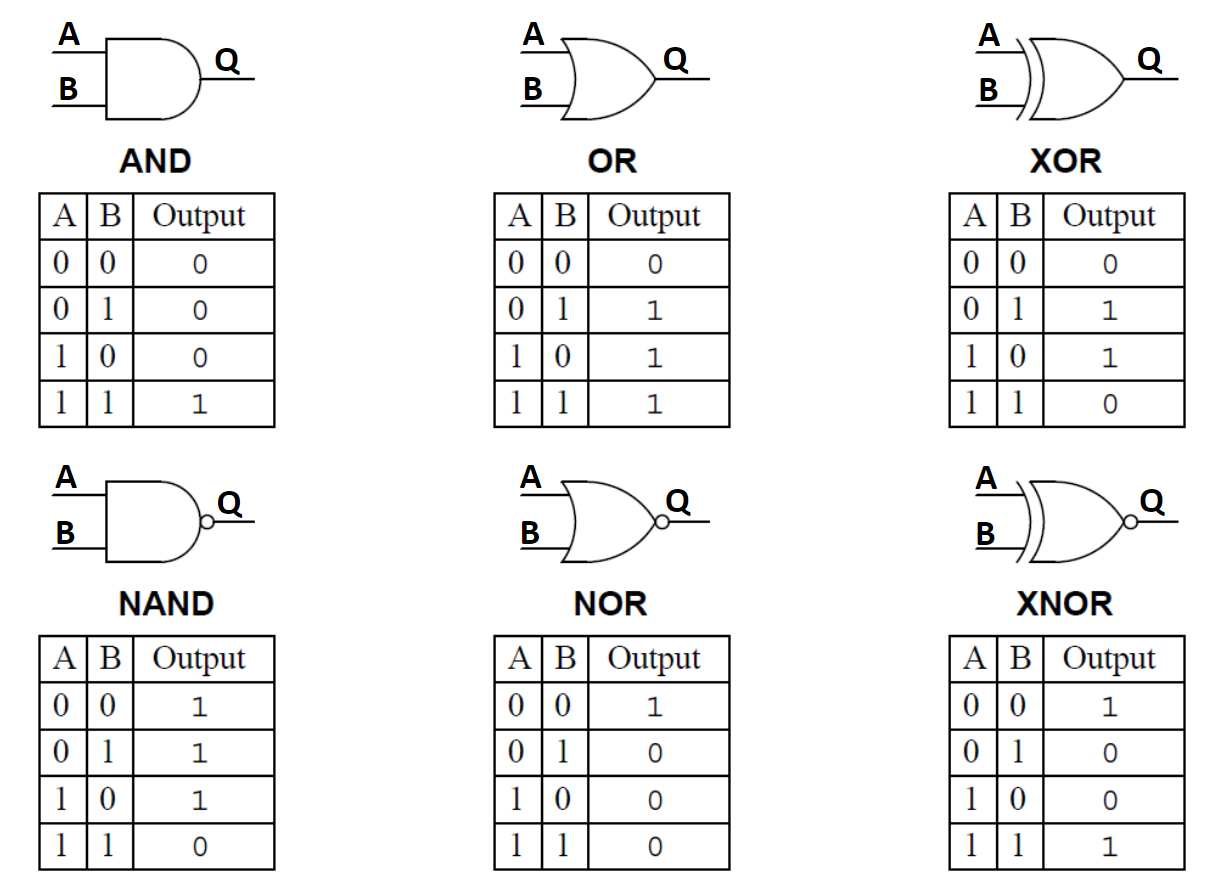 1only if its inputs are different. - NOT: An inverter that outputs the opposite of its single input.