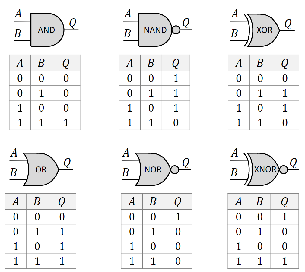While there are many basic logic gates (AND, OR, XOR, etc.), all of them can be constructed from only NAND gates or only NOR gates. Because of this property, NAND and NOR gates are called universal gates. They are crucial for building sequential circuits like latches.