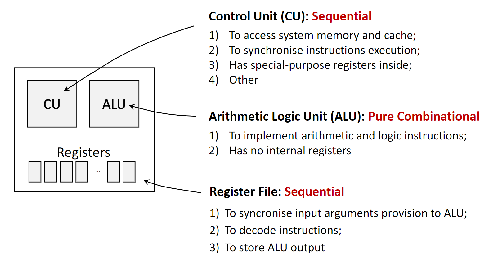 - Clock Frequency (\(F_c\)): The number of cycles per second (\(1/T_c\)), measured in Hertz (Hz) or Gigahertz (GHz).