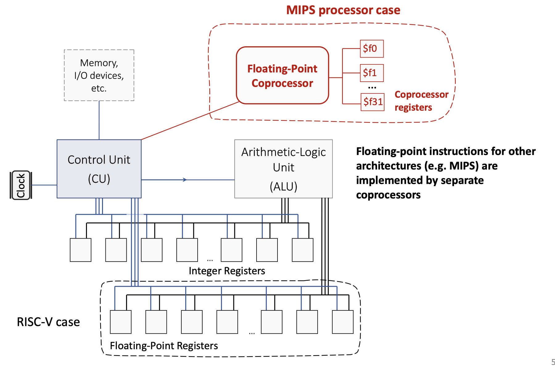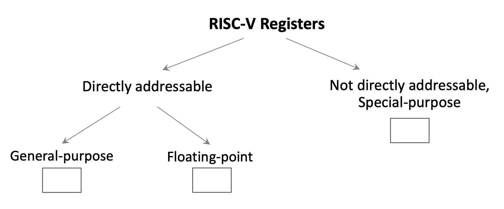 RISC-V also includes 32 floating-point registers (f0-f31) for operations on floating-point numbers. Unlike some older architectures (like MIPS, which used a separate floating-point coprocessor), RISC-V integrates floating-point support directly into the main processor.