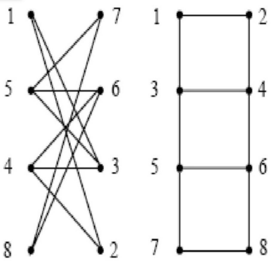 - Identify the graph: 8 vertices arranged in a 2×4 pattern with specific connections.
