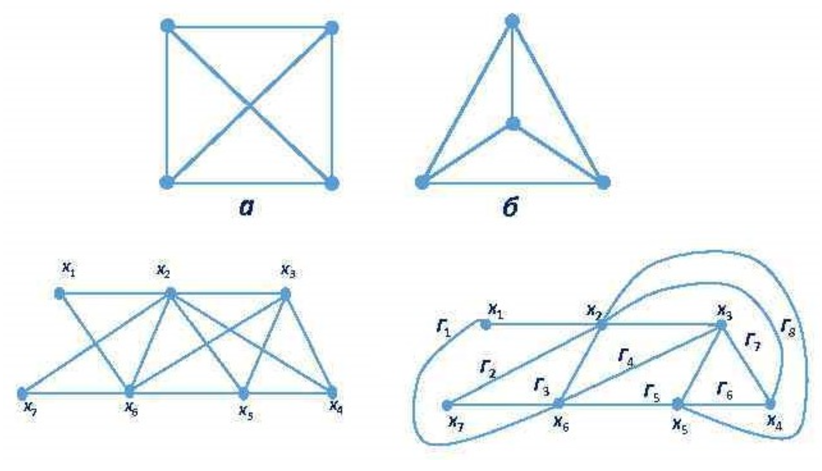 - \(K_{3,3}\): NOT planar (known as the “utility graph” or “three houses, three utilities” problem)