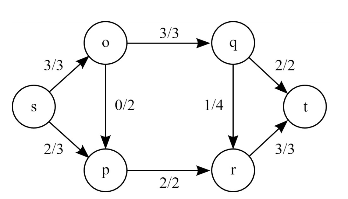 - Source \(s\) sends out: \(3\) (to \(o\)) \(+ 2\) (to \(p\)) \(= 5\) units total