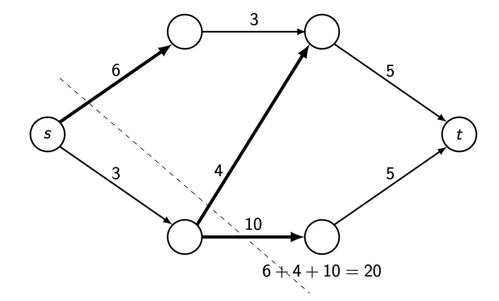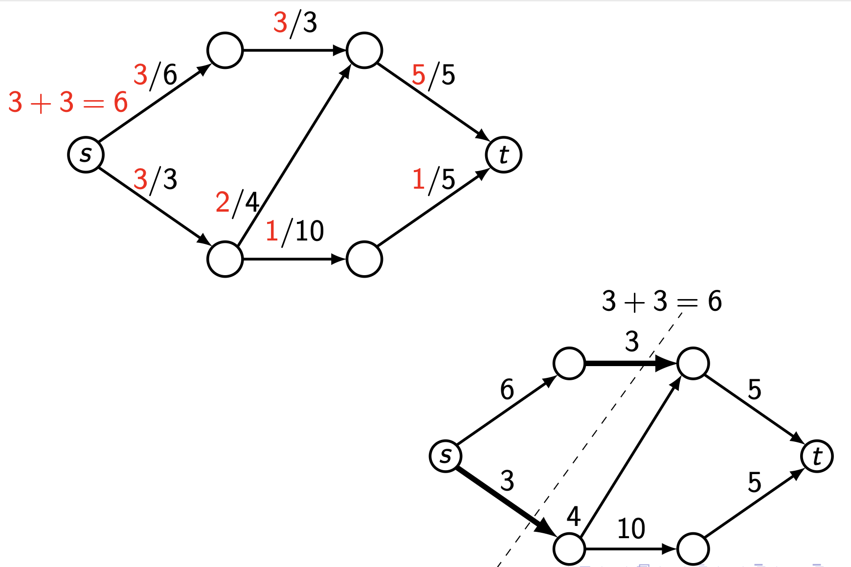 - You cannot push more flow than the minimum cut capacity (it’s an upper bound)