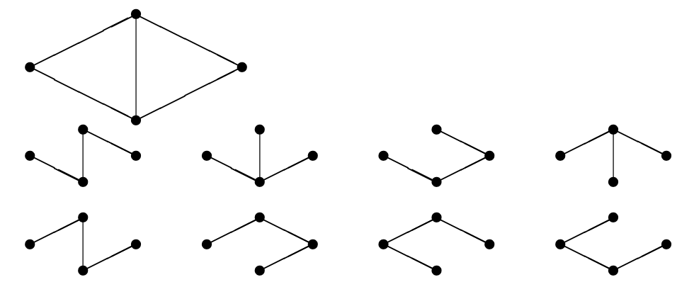 - Final count: The 8 spanning trees fall into two isomorphism classes: the path graph and the star graph.