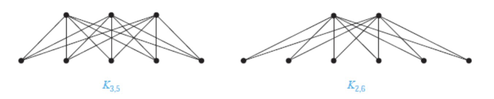 Key Concept: In \(K_{n,m}\), every vertex in the first set (size \(n\)) connects to all \(m\) vertices in the second set, and vice versa.