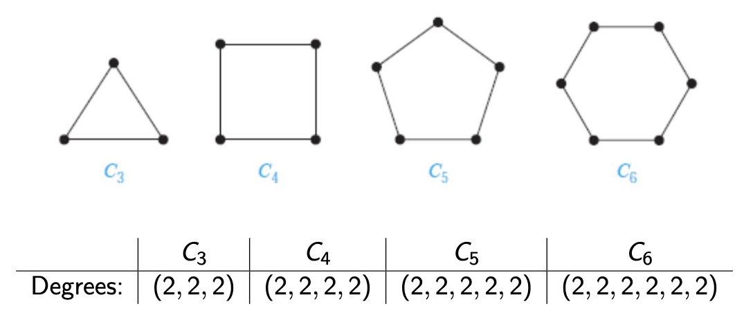 Important Corollary: The sum of all vertex degrees must be even. This immediately tells us, for example, that we cannot have a graph with 3 vertices of degrees 2, 3, and 4 (since \(2 + 3 + 4 = 9\) is odd).